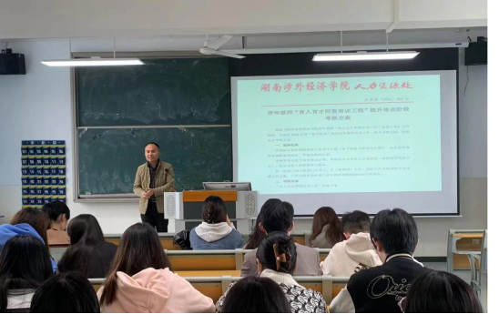 其次,副院长刘建中带领全体青年教师对学校近期出台的“育人育才师资培训工程”提升培训阶段考核方案进行逐条解读。他指出,方案明确了考核范围、对象、内容及方法,是引导青年教师进一步转变工作作风,不断提高工作效能的重要措施。他强调,各位青年教师要对标对表,充分发挥积极性、主动性和创造性,严格按照考核内容,确保考核结果成绩优异。