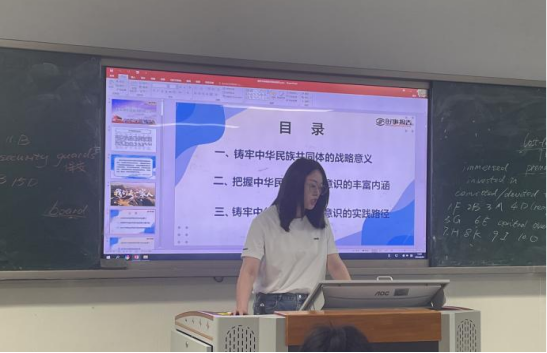 随后,王富禹老师、李姿蓉老师和邹姣老师就“铸牢中华民族共同体意识”这一专题授课内容进行说课。老师们分享了自己的教学设计和教学思路,运用鲜活案例、互动活动和深入讨论,帮助学生们更好地理解和接受中华民族共同体意识的重要性。最后,教研室主任李轶岚围绕三位主讲老师的内容,结合自己专题授课的过程与老师们进行深入探讨。老师们都认为形势与政策课堂不仅是传授知识的过程,更是培养学生批判性思维和问题解决能力的重要途径。因此,教师在讲授这一专题过程中应注重启发式教学,鼓励学生积极思考参与问答,深刻认识铸牢中华民族共同体意识的重要意义。激发学生学习兴趣,提高他们的实践能力和创新意识。