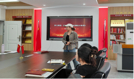 集体政治生日活动后,党支部开展六月主题党日活动。全体党员首先观看廉洁警示教育微电影《进退》,该片讲述了一名党员干部从遗忘初心到幡然醒悟的过程,是对党员干部一次深刻的廉洁自律教育。观看结束后,大家纷纷表示,要从这部警示教育片中汲取深刻教训,把各项纪律要求落实到实际工作和生活中,筑牢党员使命担当。随后为深入学习贯彻《中国共产党纪律处分条例》,严格落实校党委关于党纪学习教育相关要求,全体党员共同学习《中国共产党纪律处分条例》。