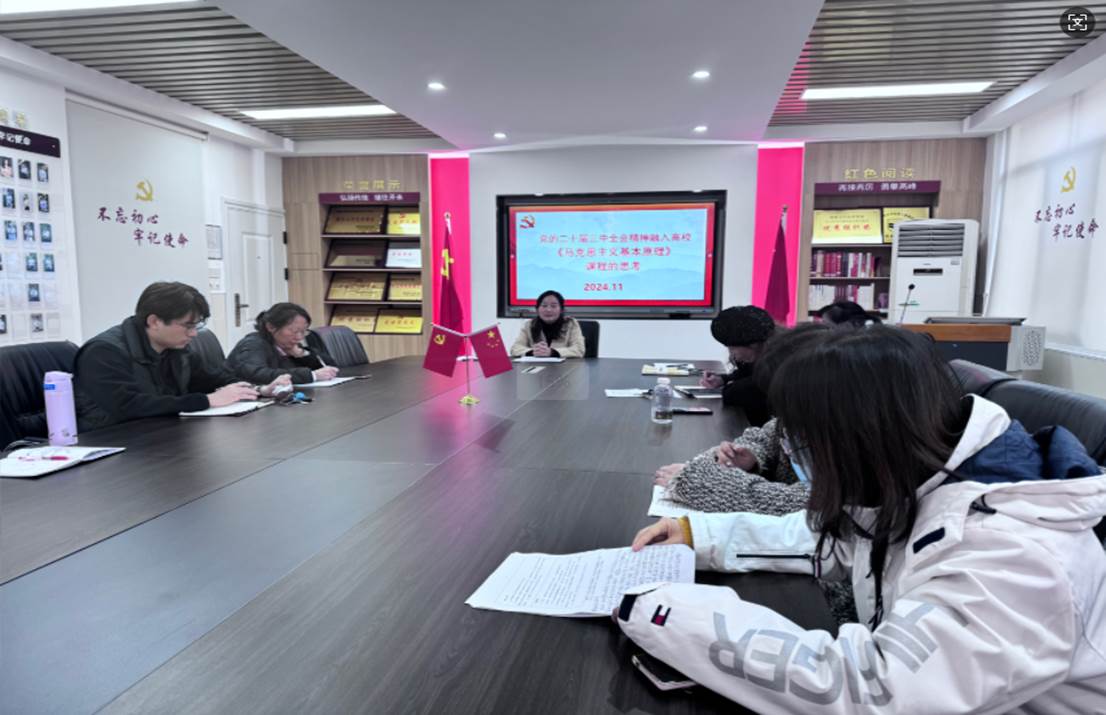 11月20日,马克思主义基本原理教研室在一教202会议室举行党的二十届三中全会精神融入《马克思主义基本原理》课教学研讨会,会议由教研室主任李玉兰副教授主持,教研室全体教师与会。