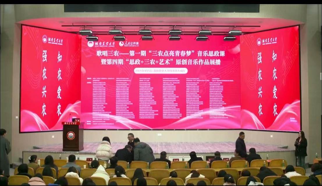 在随后的第四期“思政+三农+艺术”原创音乐作品展播中,来自湖南农业大学的师生们展示了他们精心创作的音乐作品。这些作品以三农为主题,旋律优美,歌词真挚,表达了青年学生对农村的热爱和对农民的深情厚谊。