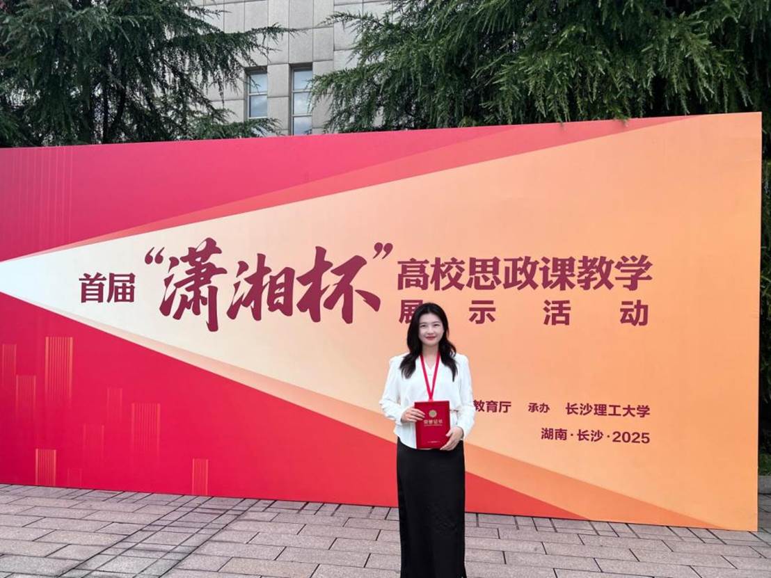 近日,由湖南省教育厅主办的首届"潇湘杯"高校思政课教学展示活动圆满落幕,湖南涉外经济学院马克思主义学院教师团队表现优异,喜获多项荣誉。其中,李轶岚老师凭借扎实的理论功底和生动的教学设计荣获一等奖,周爱华、王宁、赵丽三位老师以创新的教学方法和深刻的思想内涵同时斩获二等奖,充分展现了我院思政课教师的专业素养与教学风采。