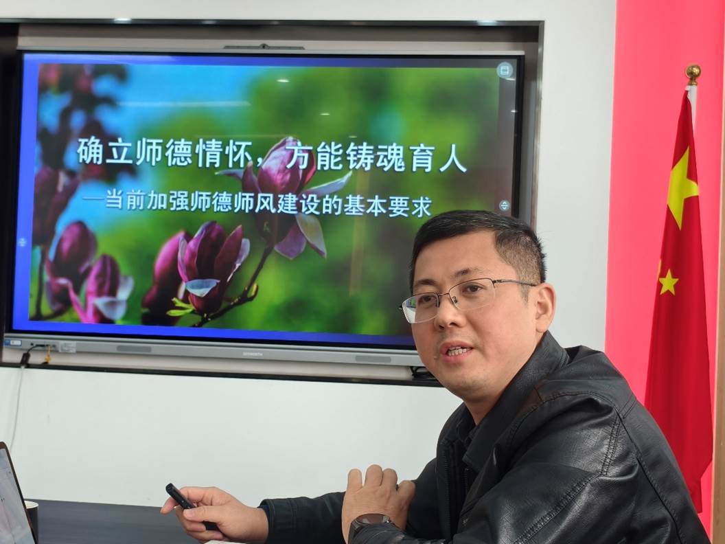 针对青年教师成长需求,邓院长提出“三维赋能”路径:一是以“理论研修”筑基,通过经典著作研读、政策法规学习提升政治素养;二是以“实践淬炼”提能,在课程设计、学生指导中践行育人初心;三是以“文化浸润”铸魂,通过师德标兵评选、教育故事分享等活动营造向善向上氛围。他特别强调:“师德不是抽象的概念,而是体现在每一次备课、每一堂授课、每一场谈心之中。”