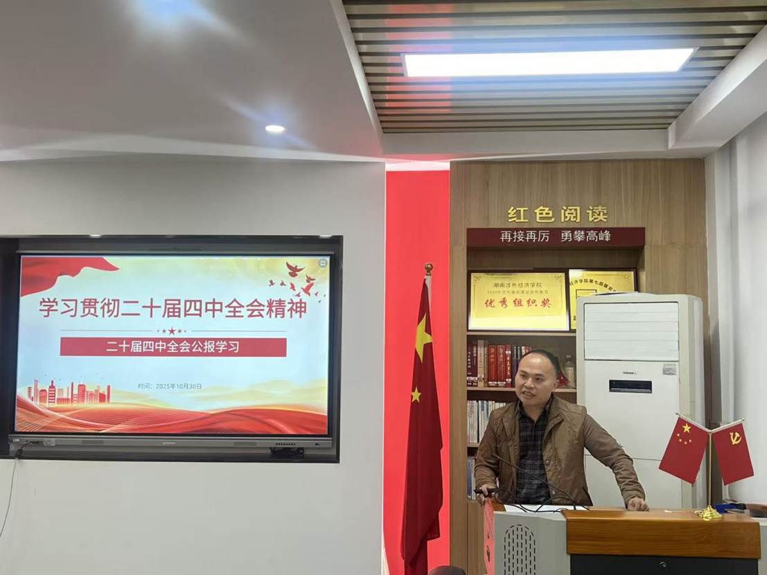 为深入学习贯彻党的二十届四中全会精神,推动全会精神在思政教育领域落地生根,2025年10月30日下午,马克思主义学院组织全体教师在一教202会议室开展专题学习活动。会议由学院副院长刘建中主讲,邓青林院长作总结讲话,全体专任教师参与学习研讨。